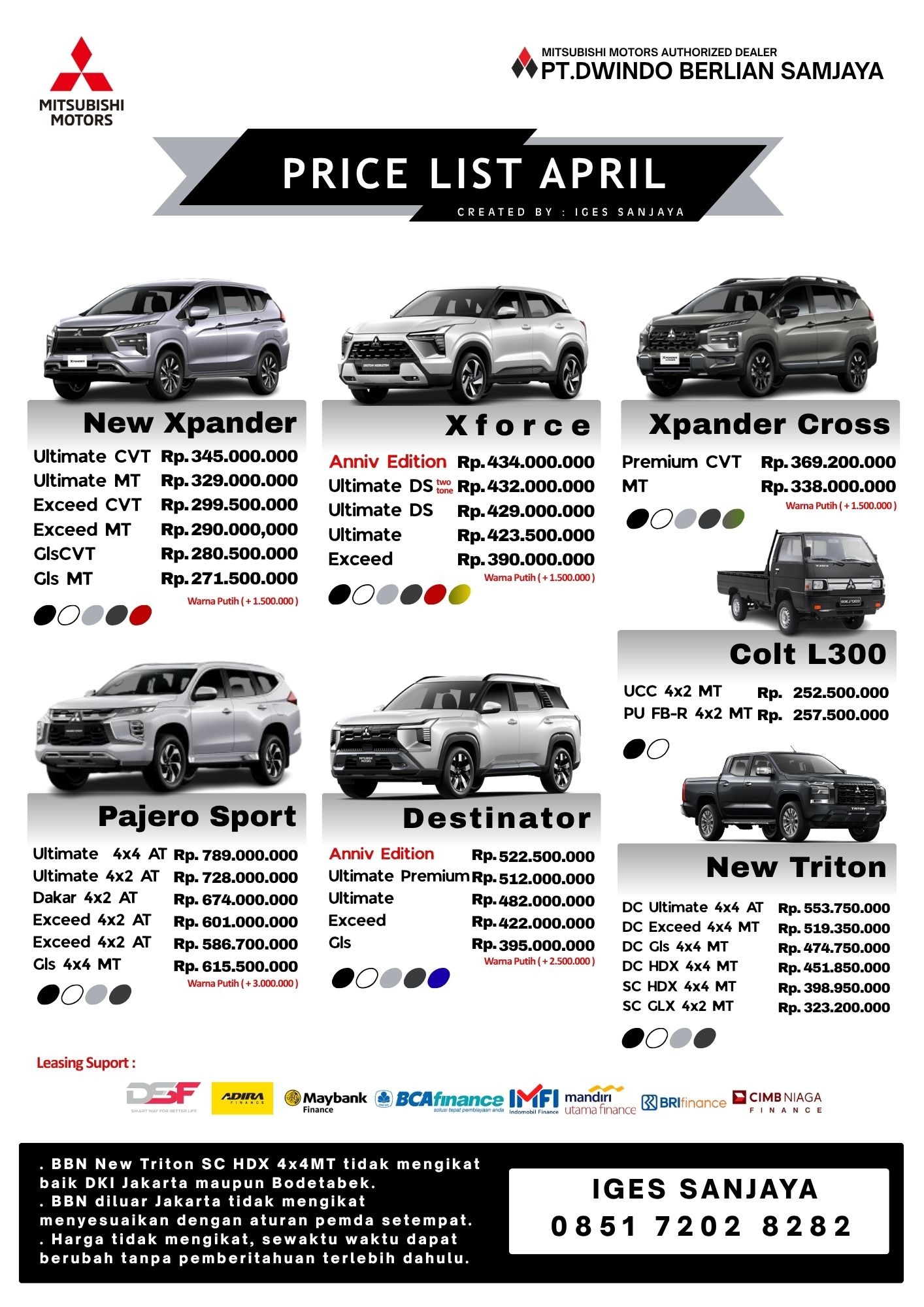 Dapatkan informasi harga Mobil Mitsubishi dengan promo istimewa :
